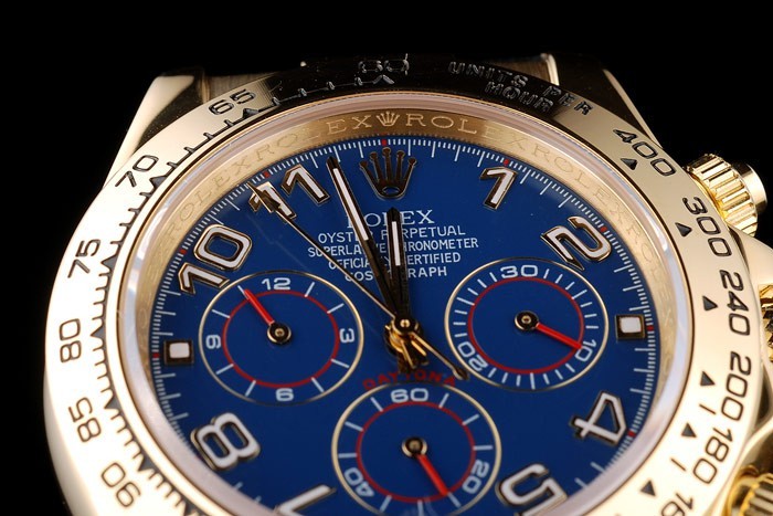 Crown: 18k yellow gold cutwork crown with Rolex logo and two smaller cutwork push button crowns on either side of it