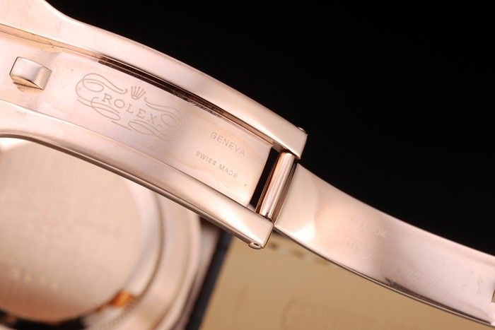 Back: Rose-gold plated snap-in back with Rolex engravings