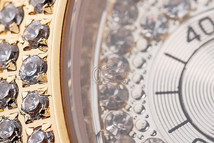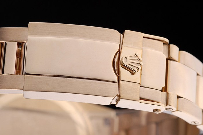 Crown: Gold toned cutwork crown with Rolex logo and two additional crowns on either side of it