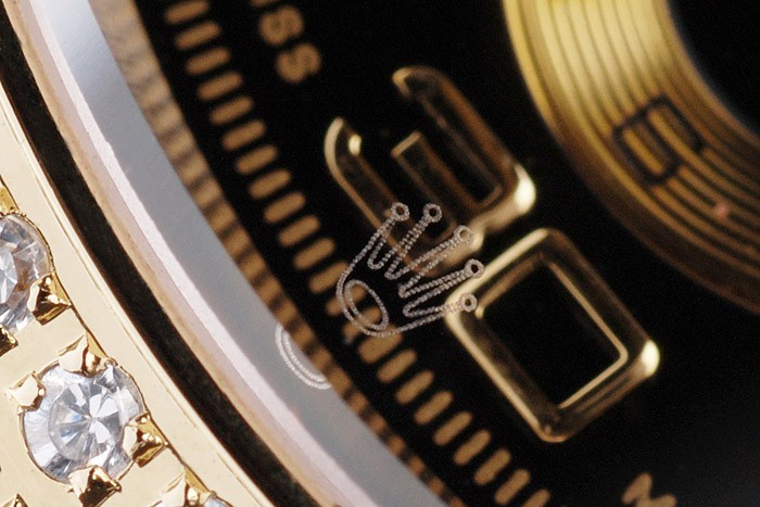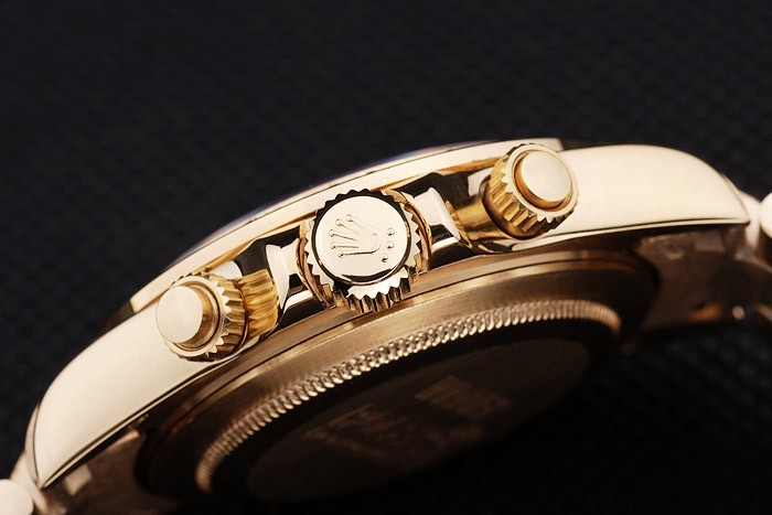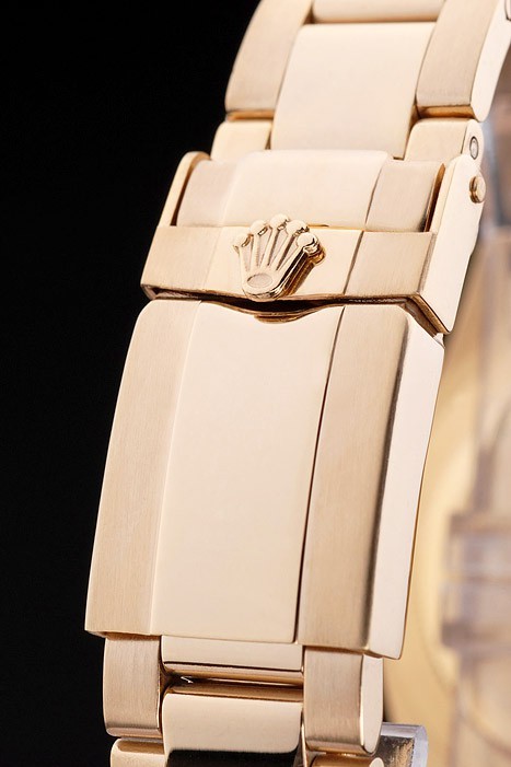 Crown: Gold toned cutwork crown with Rolex logo and two additional crowns on either side of it