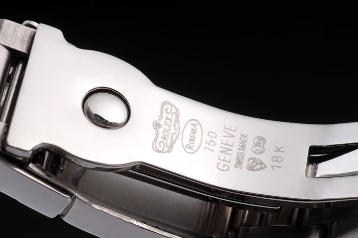 Crown: Ion-plated cutwork crown with Rolex logo and smaller crowns on either side of it