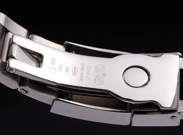 Crown: Ion-plated cutwork crown with Rolex logo and smaller crowns on either side of it