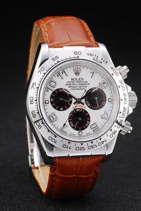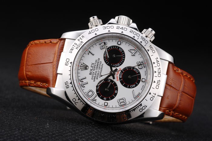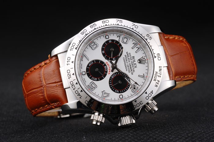 Rolex Daytona Stainless Steel Case White Dial Brown Leather Strap
